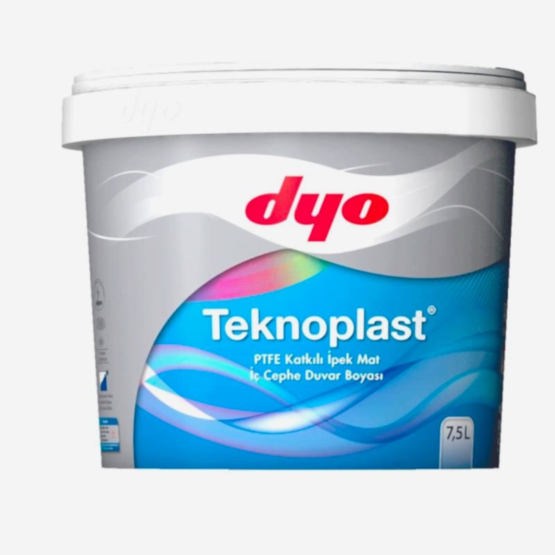 Tanım : Dyo Teknoplast akrilik emülsiyon esaslı, PTFE katkılı, ipek mat, silinebilir, dekoratif iç cephe son kat boyasıdır.